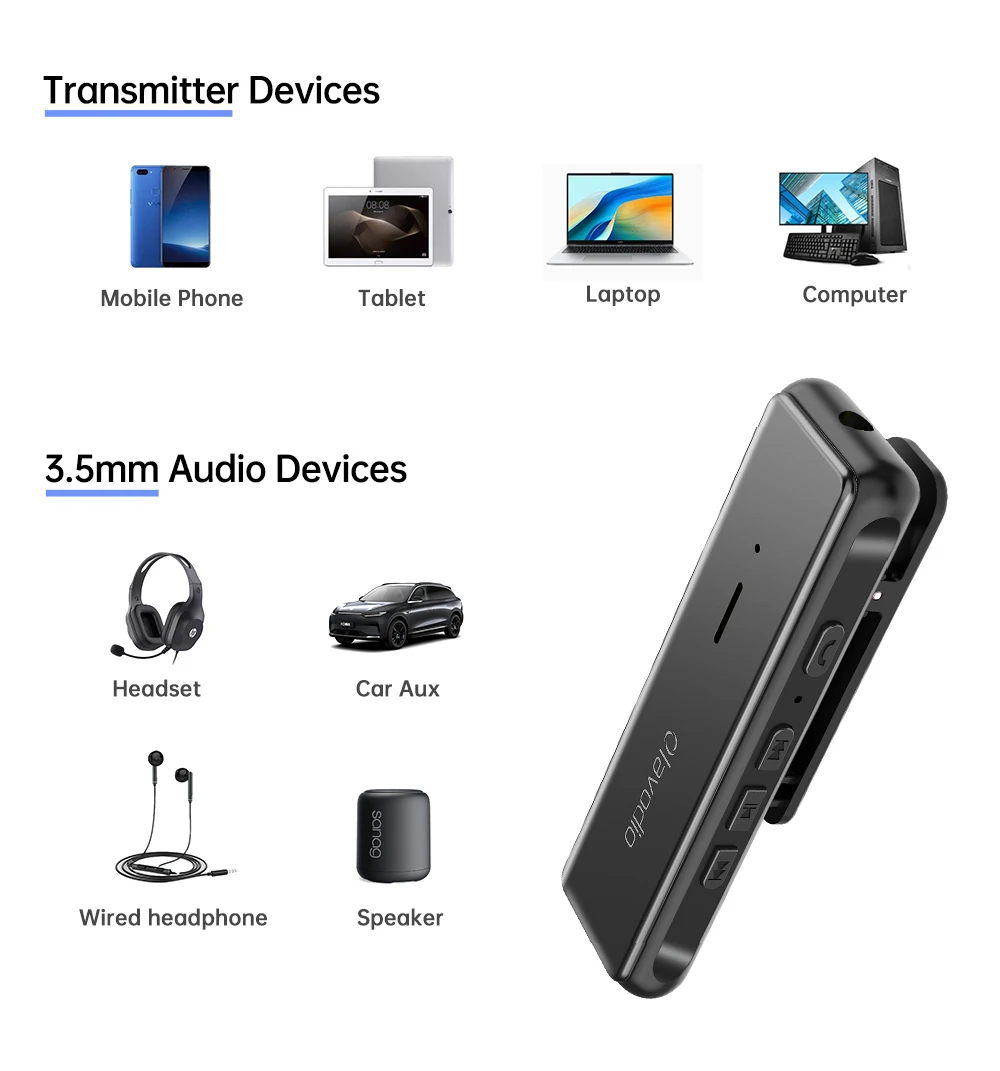 Lazata Bluetooth Receiver Audio Adapter with MIC 5.1 aptX LL 3.5mm AUX Wireless Headphone Game Music Type C Charging
